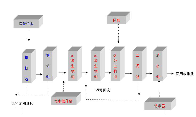 醫院污水是指醫院(綜合醫院、專業病院及其它類型醫院)向自然環境或城市管道排放的污水。其水質隨不同的醫院性質、規模和其所在地區而異。每張病床每天排放的污水量約為200-1000L。醫院污水中所含的主要污染物為:病原體(寄生蟲卵、病原菌、病毒等)、有機物、漂浮及懸浮物等,未經處理的原污水中含菌總量達108個/mL以上。